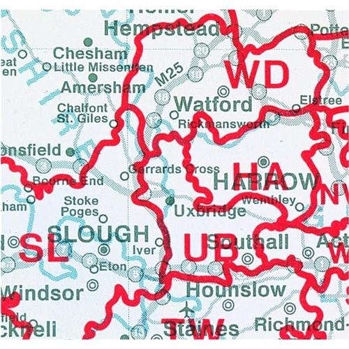 LAMINATED MAPS: Permanently bonded between two sheets of tough, flexible, crystal clear plastic making them virtually indestructible. It also gives the map surface a dry or white finish allowing you to update information at a stroke. Detailed 4-colour single sheet map of UK (GB and N Ireland) showing postcode area letters on a background map showing county boundaries and main roads. Scale - 12.5miles:1 inch.