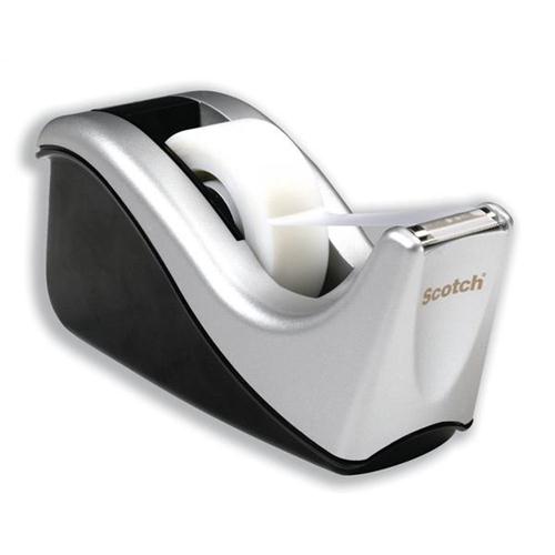 Scotch Desktop Office Tape Dispenser C60-ST is a deluxe, two-tone silver/black desktop tape dispenser with a weighted base. The sleek wave design complements any decor. The weighted, non-skid base is ideal for easy, one-handed dispensing. It has an attached tape hub to prevent loss and a high-quality cutting blade, designed to last for years. Dispenses standard tapes on a 1 in. core up to 3/4 in. wide and 1500 in. long. Scotch office tape dispensers allow you to have your favourite tapes handy and ready to use!